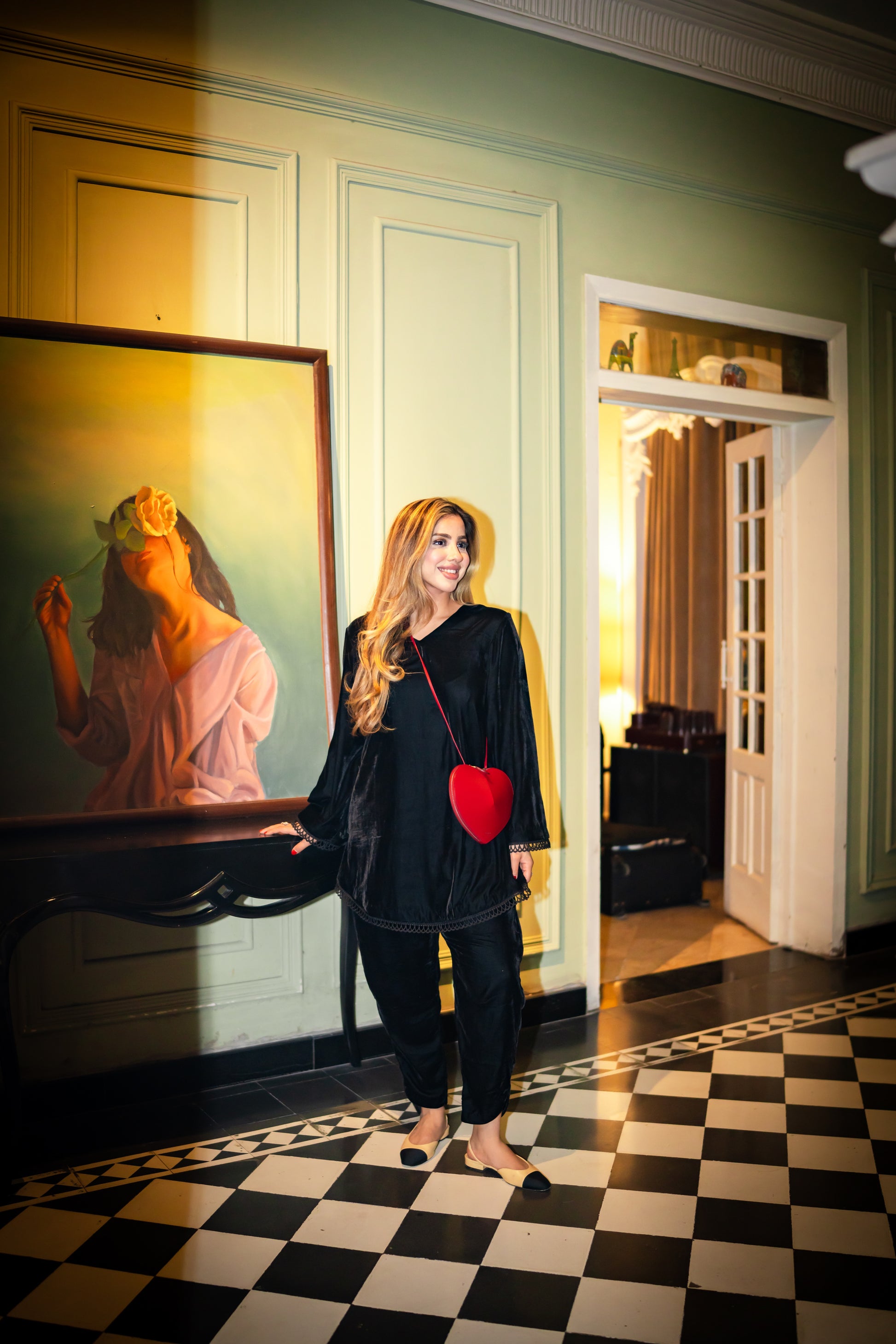 Discover timeless elegance with The Rania Set, a luxurious black velvet two-piece.