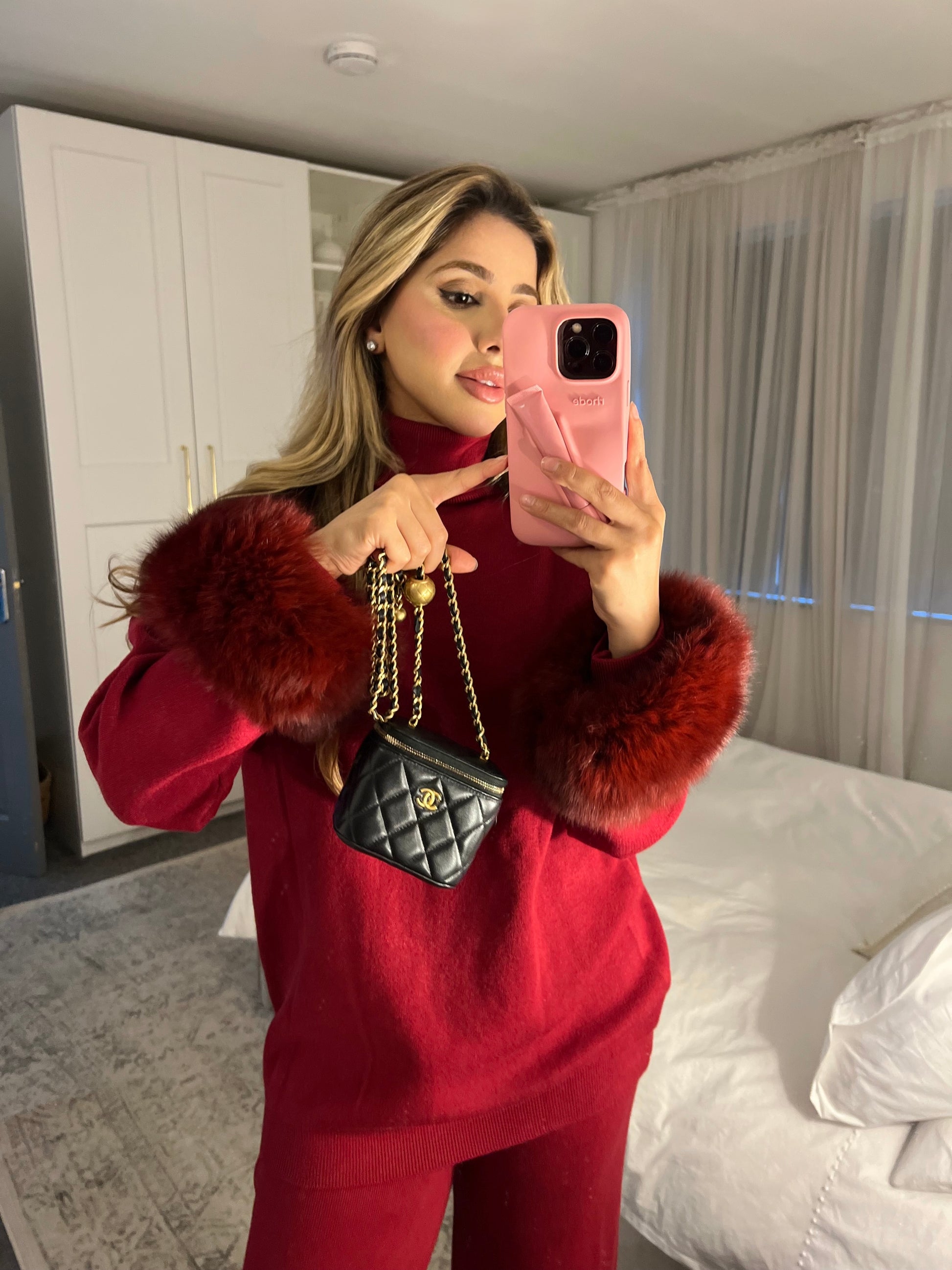 Indulge in timeless sophistication and unparalleled comfort with our Camille Set in an opulent deep ruby hue. Designed to exude understated glamour, this set features a relaxed-fit sweater adorned with plush faux fur cuffs that add a touch of elevated elegance to your everyday look.