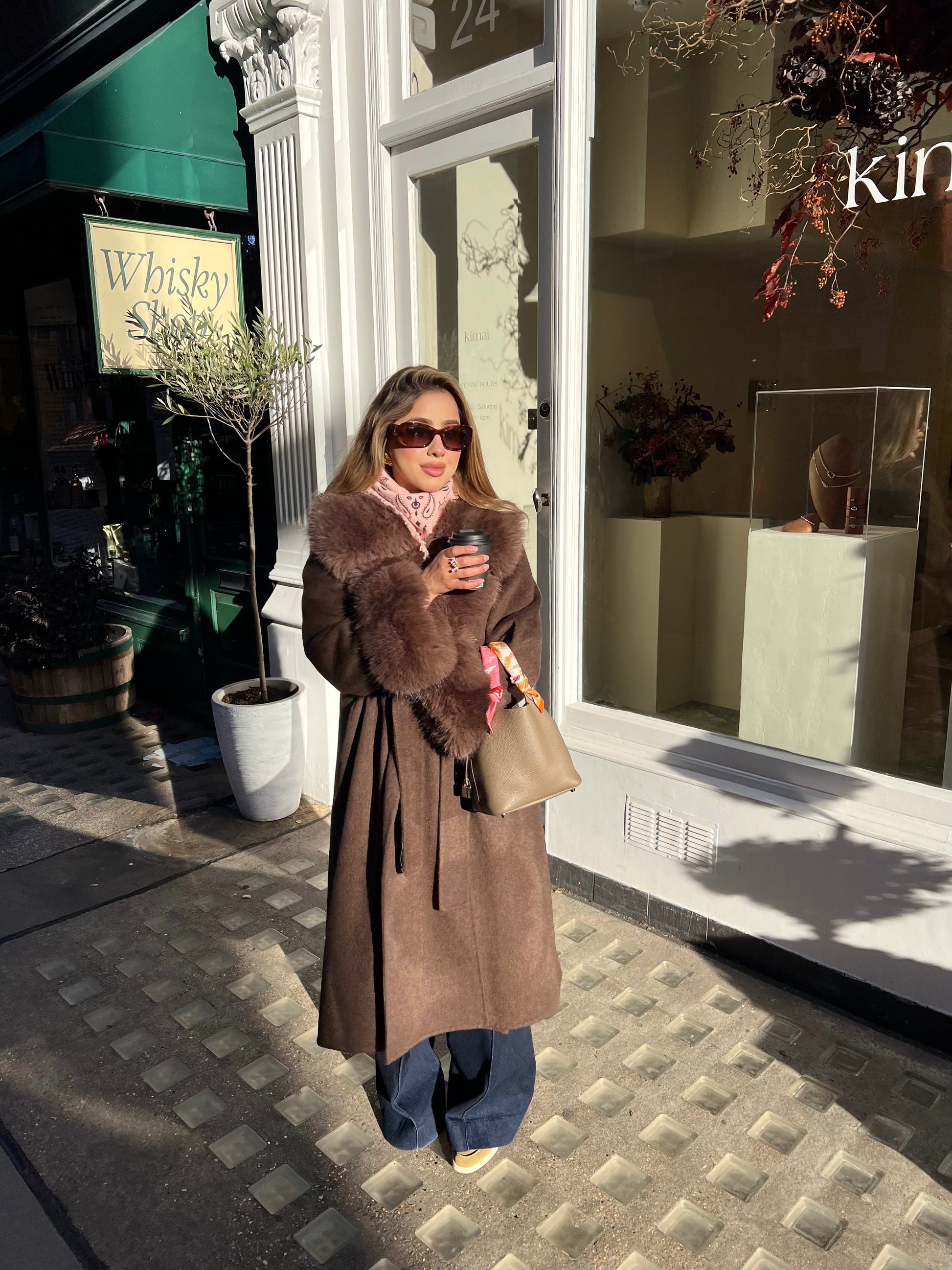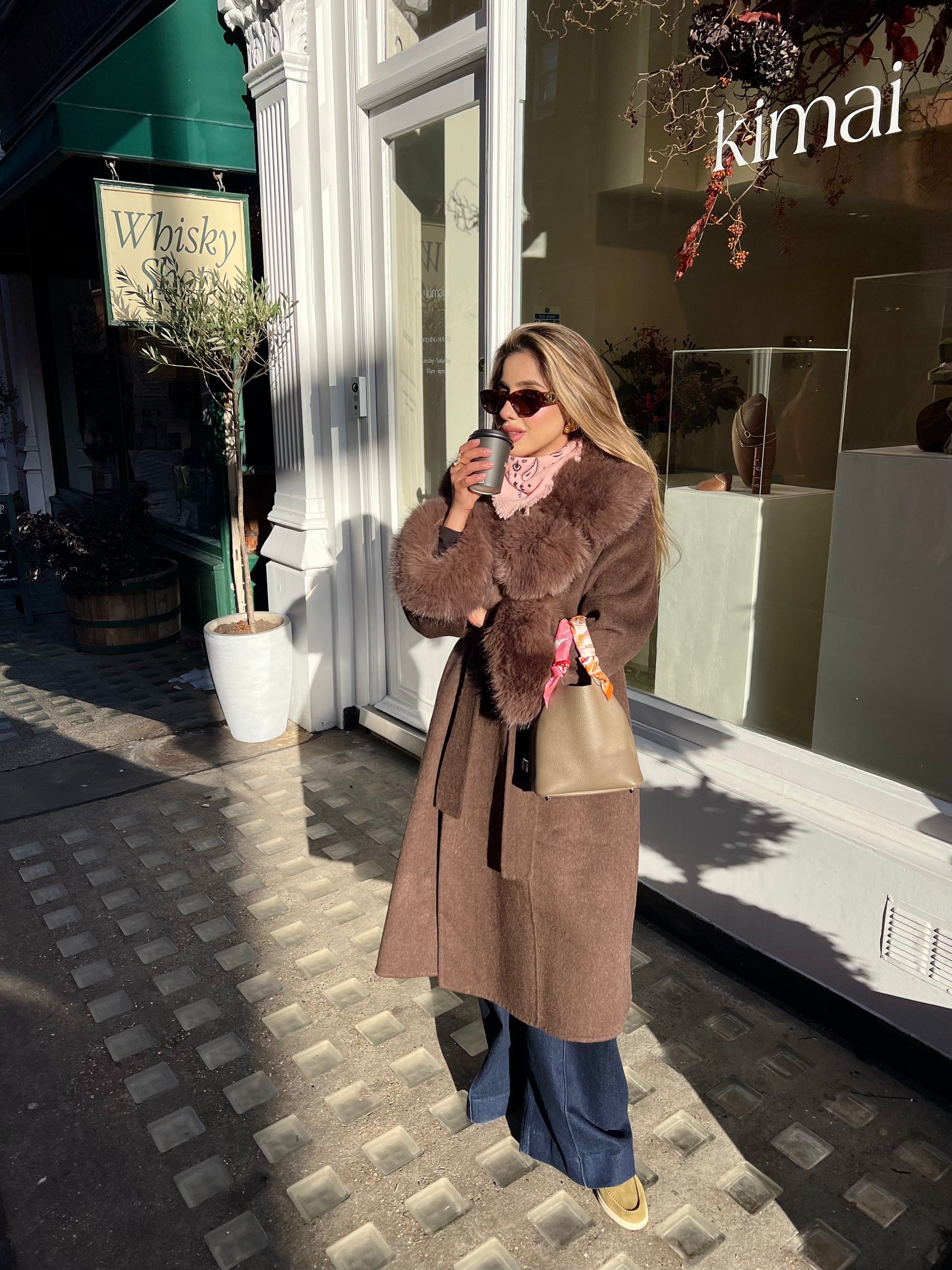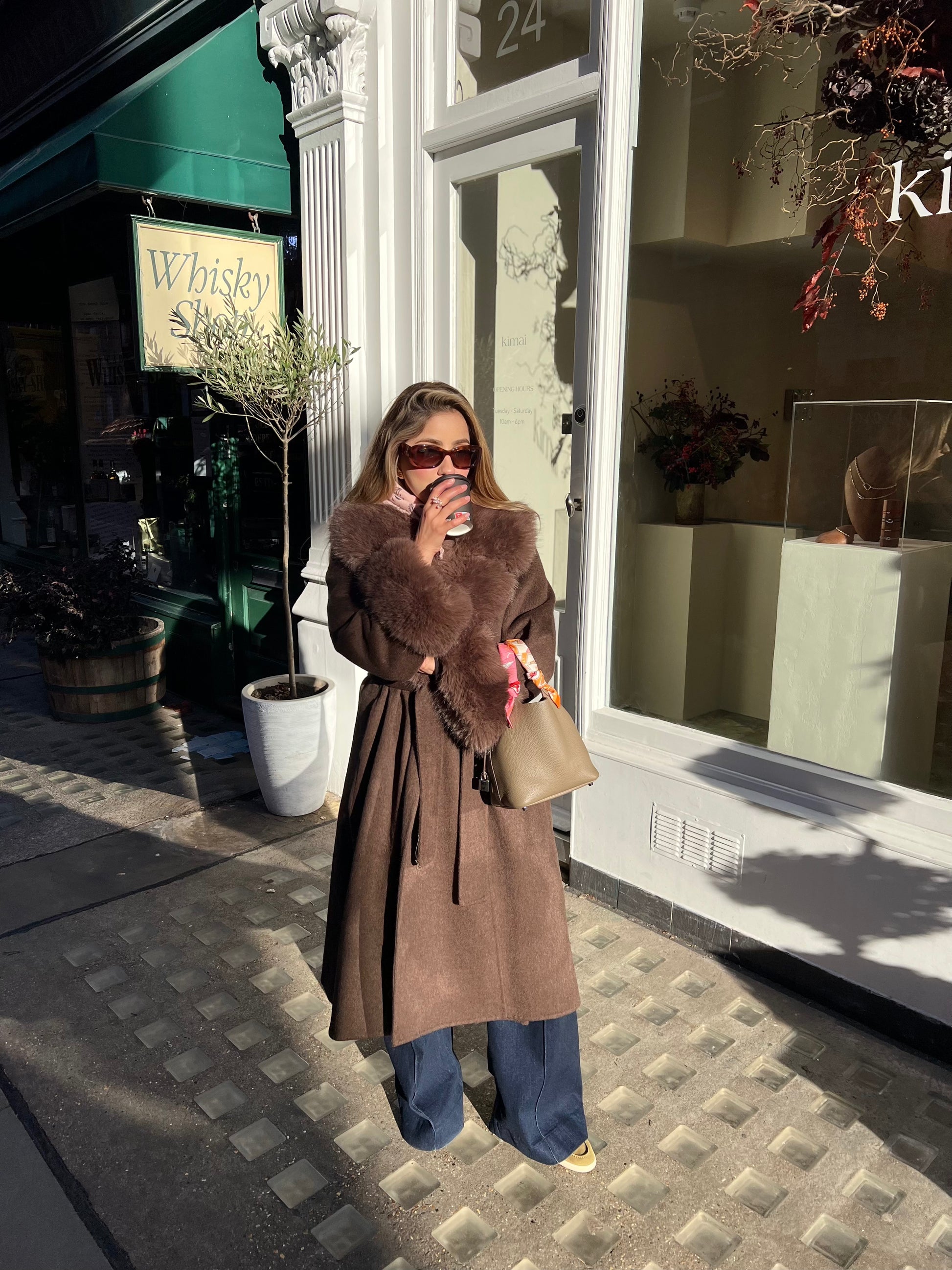 A 100% woolen coat with detachable fur cuffs and fur on the lapels. Keeping you warm yet luxurious all winter.