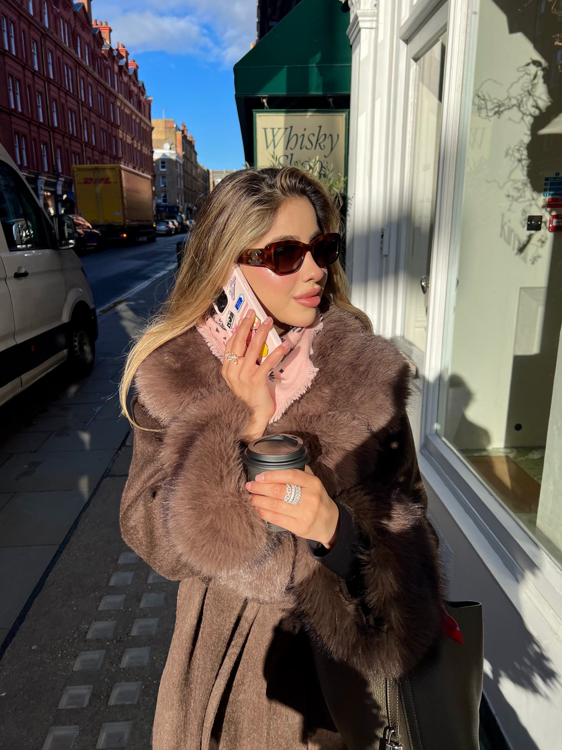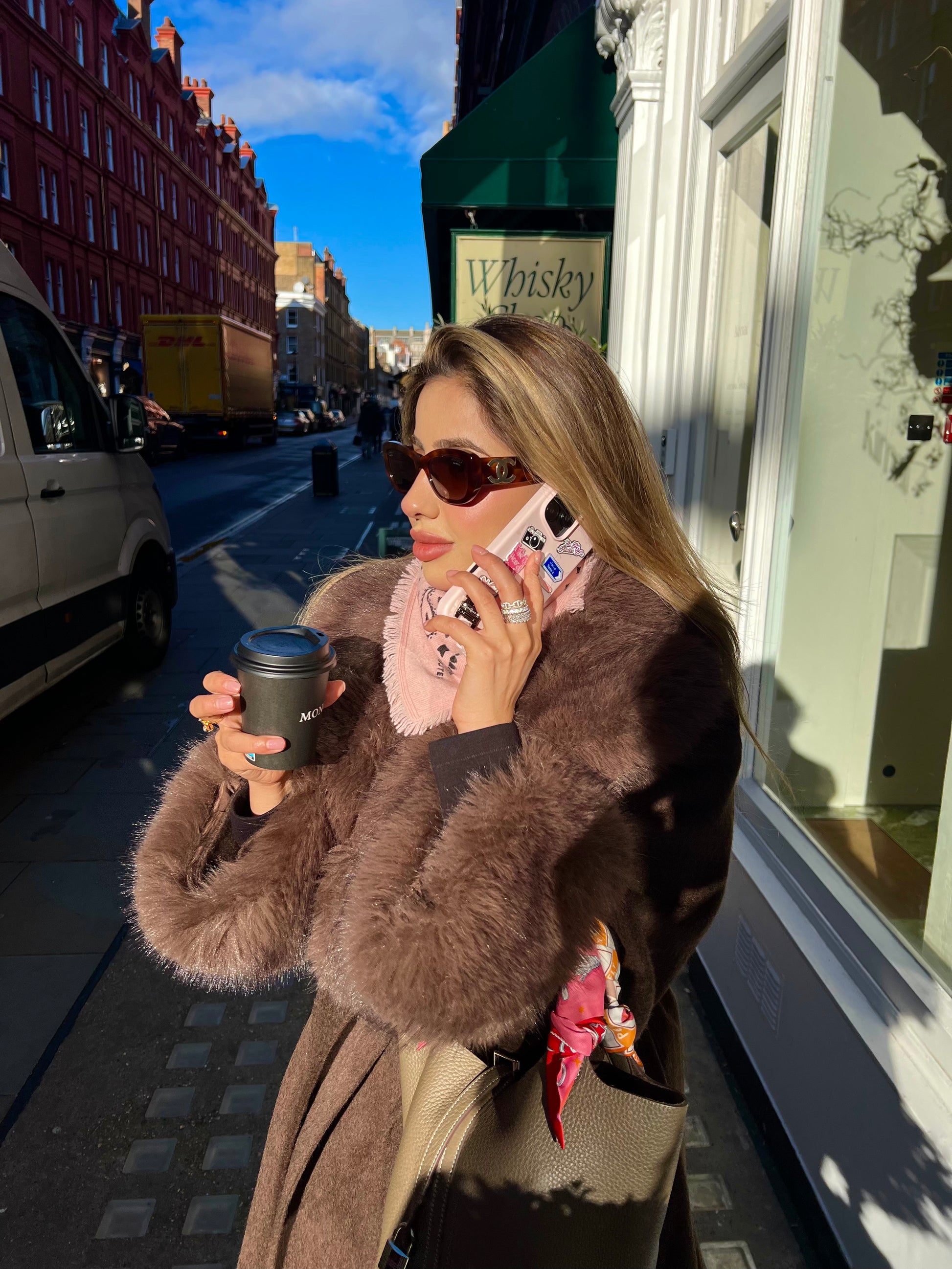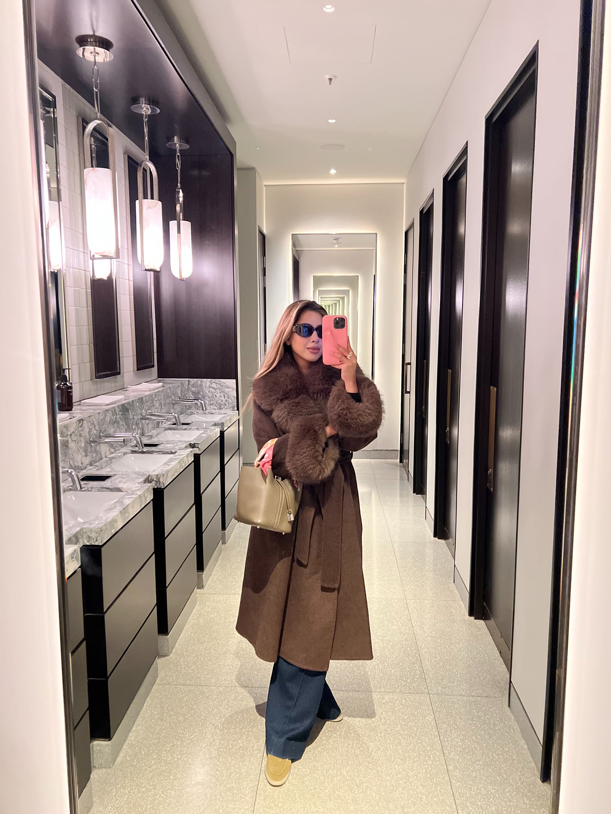 A 100% woolen coat with detachable fur cuffs and fur on the lapels. Keeping you warm yet luxurious all winter.