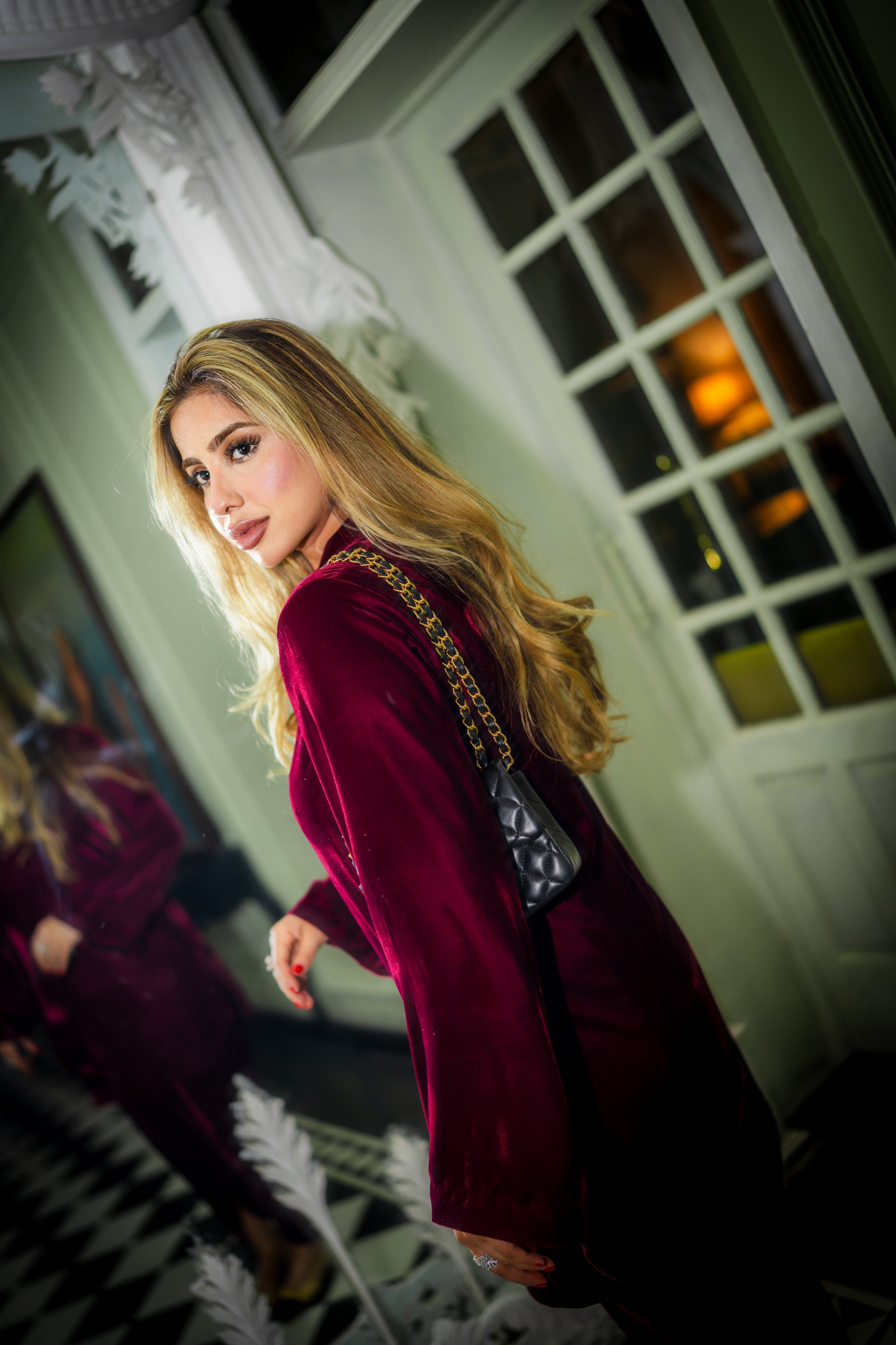 Made from premium, lightweight velvet, this ensemble drapes beautifully, offering a graceful silhouette that flatters effortlessly. The deep maroon hue exudes warmth, luxury, and regal charm—instantly elevating your wardrobe and making this set a standout essential for the season.