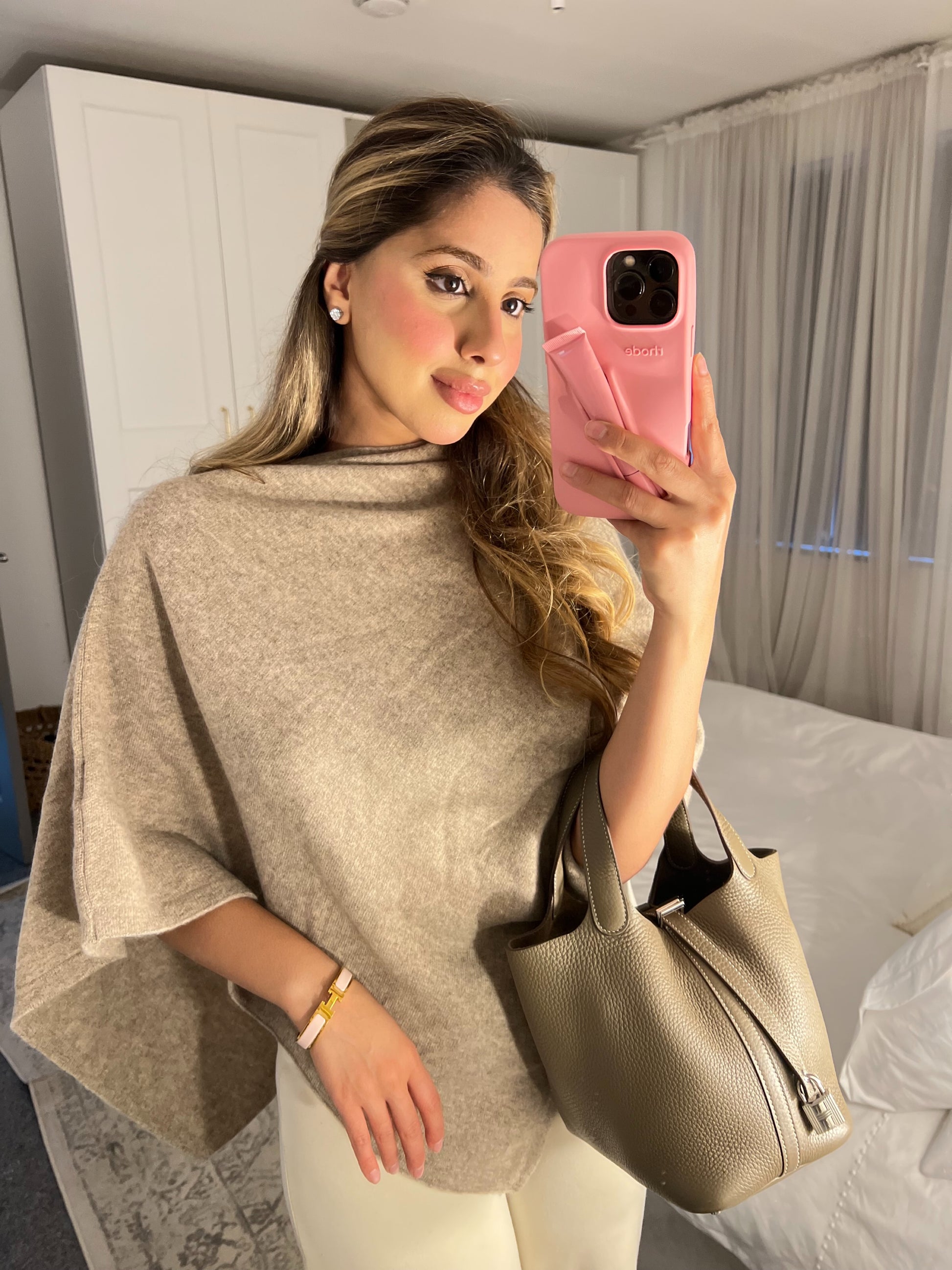 Elevate your everyday elegance with our Classic Wool Blend Cape, crafted from a luxuriously soft wool blend in a timeless oatmeal beige hue. This effortlessly chic piece drapes beautifully over the shoulders, offering both warmth and sophistication. The minimalist silhouette and fine tailoring make it perfect for layering over fitted tops or knitwear, creating a refined yet relaxed look.